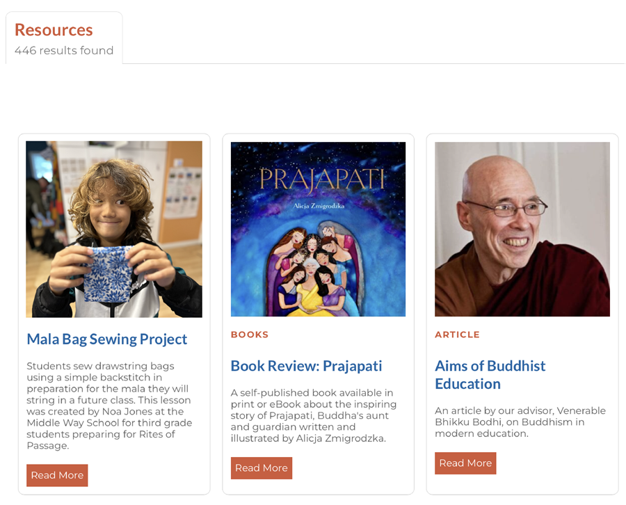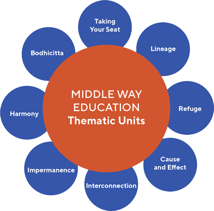So this is how we arrived at our Thematic Unit structure. The MWE dharma themes, such as Impermanence, Cause and Effect, and Lineage, don’t fall into any one of the traditional Buddhist groupings—they are more aligned with children’s interests and cognitive abilities. They are also not fixed. In 2023, we are interested in exploring a new theme: The Invisible World. After 5 years of working with these themes at the Middle Way School in New York and at various camps, we now have countless lesson plans, songs, book recommendations, teacher reflections, and more, which are currently being uploaded to Atlas Rubicon, a platform that can be used by partner schools. Many of the individual lessons can already be found on our public resource website.