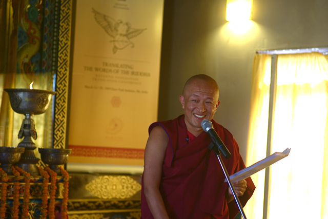 Rinpoche delivers "Translating the Words of the Buddhadharma for Hearing, Contemplation and Meditation" to Translation Conference attendees.