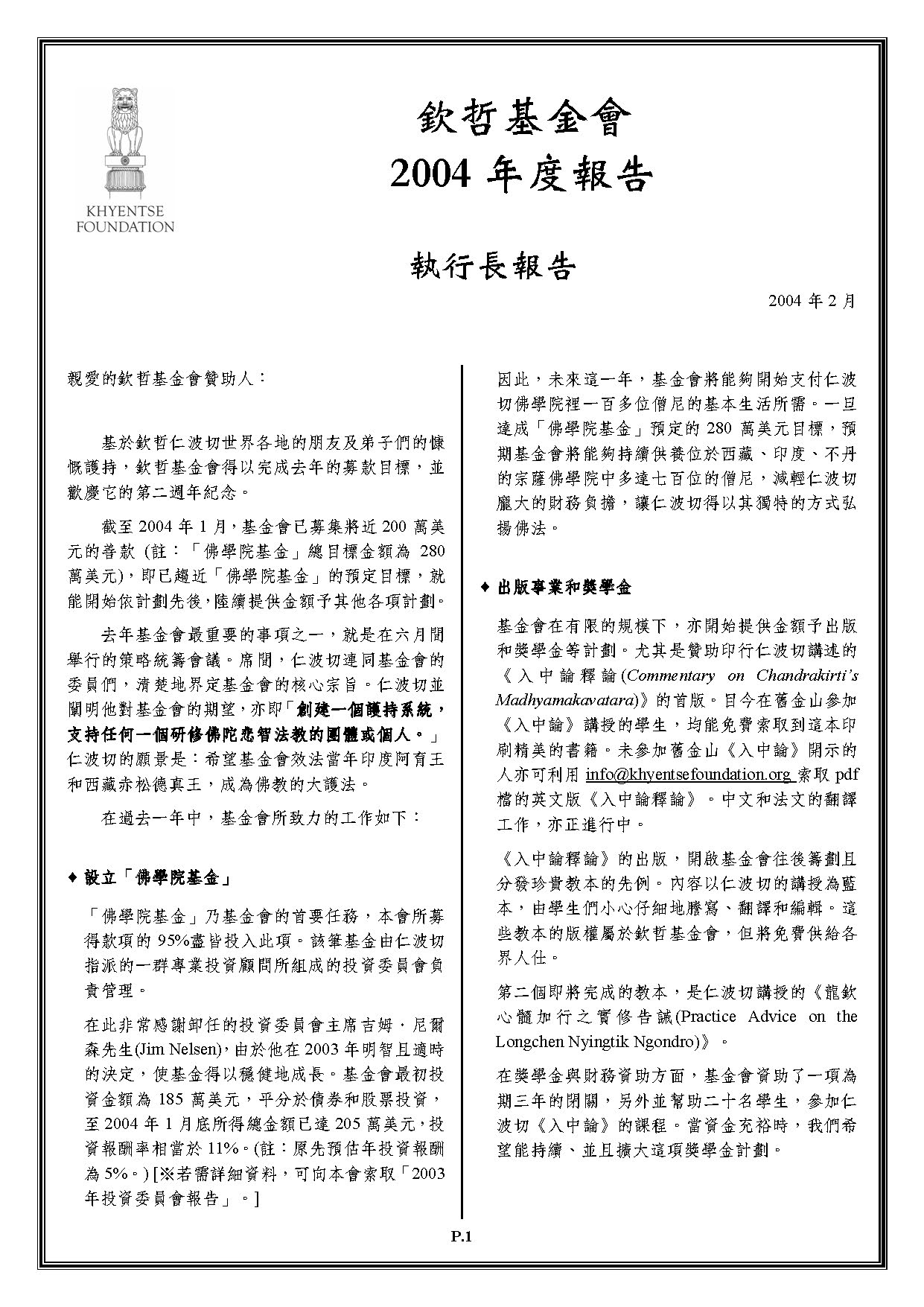 钦哲基金会每年的年度报告都会重点报道我们过去一年的主要活动,并感谢我们的捐助者的大力支持以及志愿者的无私工作。 这些年报通过报告我们给予受助者的资助所带来的影响、介绍我们的财务状况以及展示资源的分配方式,从而建构出我们工作的历史性框架。