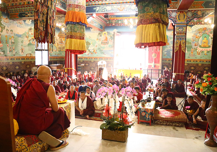 In April 2017, following the conclusion of the 21-day Tara puja Dzongsar Khyentse Rinpoche offered for Khyentse Foundation at Dzongsar Khyentse Chökyi Lodrö Institute (DKCLI), Rinpoche announced to the institute’s khenpos and KF Executive Committee members that a pre-monastic Buddhist foundation school would be established to prepare students for advanced studies in Buddhist philosophy and dialectics at the monastic college (Dzongsar Shedra) of DKCLI. The school’s curriculum would emphasize building a strong foundation in Buddhist history, philosophy, and dialectics, with a focus on Tibetan- and English-language studies. The program would also offer optional languages, such as Hindi and Mandarin, with the overarching goal of nurturing confident, creative, genuinely kind, and independent-thinking students. Those who chose not to continue on to the shedra would at least have a basic understanding of Buddhism and valuable language skills, enabling them to lead fulfilling lives.